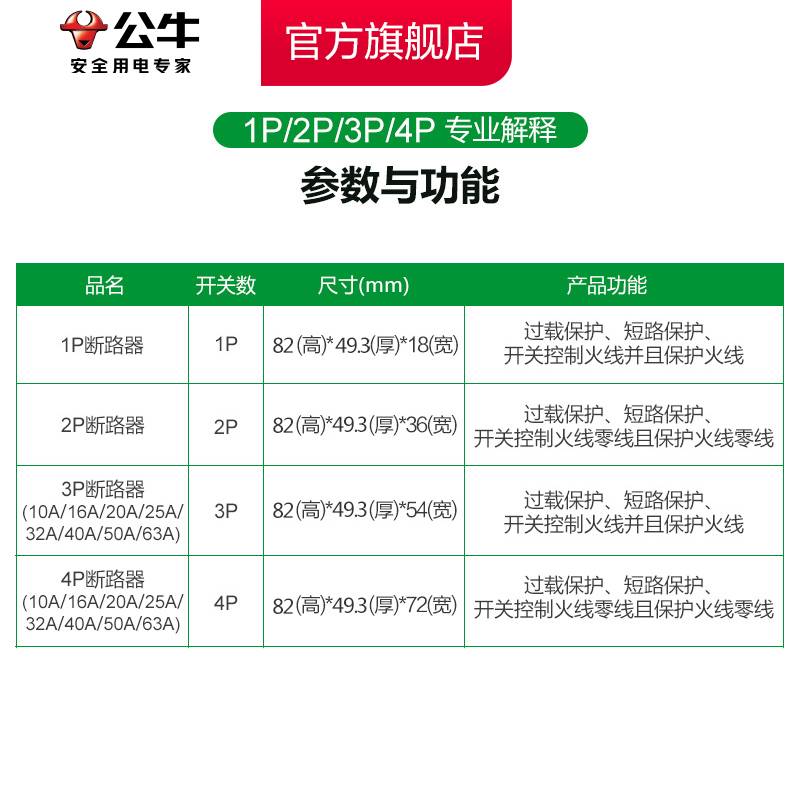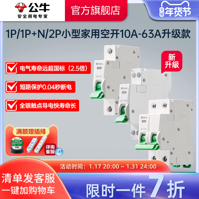 Bull Socket Flagship Breaker Air Switch Home Empo Electric Gate 1P2P63A Upgrade-Taobao