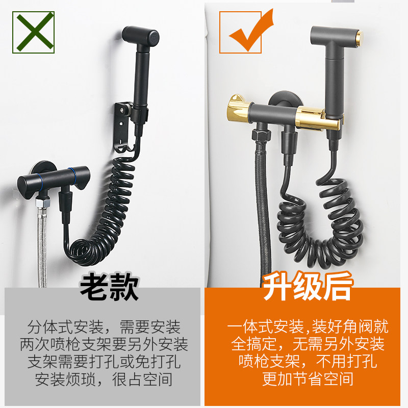 Black gold-single function toilet spray gun suit black gold-double functional toilet spray gun suit black gold-double function toilet spray gun suit-spray gun in left jacked-single-function toilet spray gun suit Yahie -