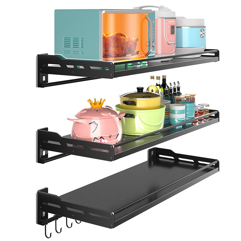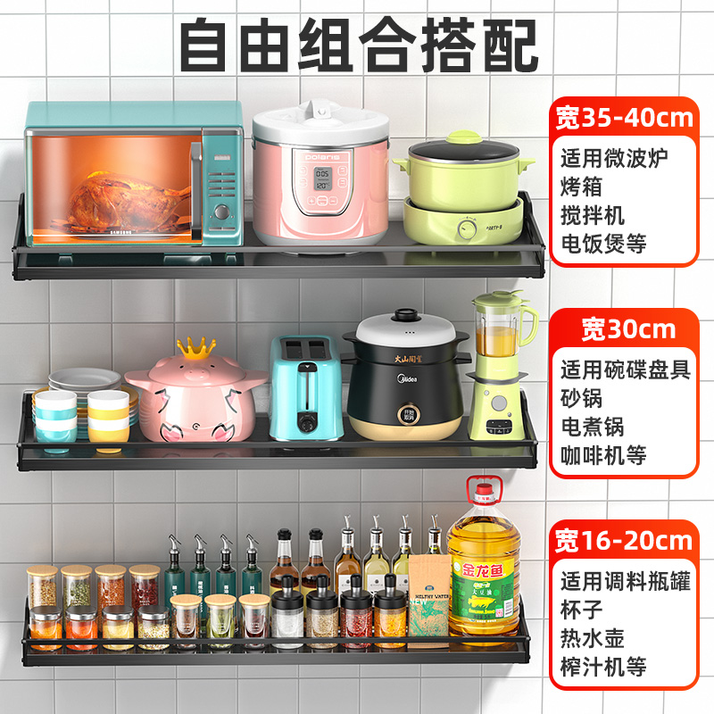 Kitchen microwave rack stainless steel punch-free rice cooker wall-mounted oven wall storage seasoning bracket