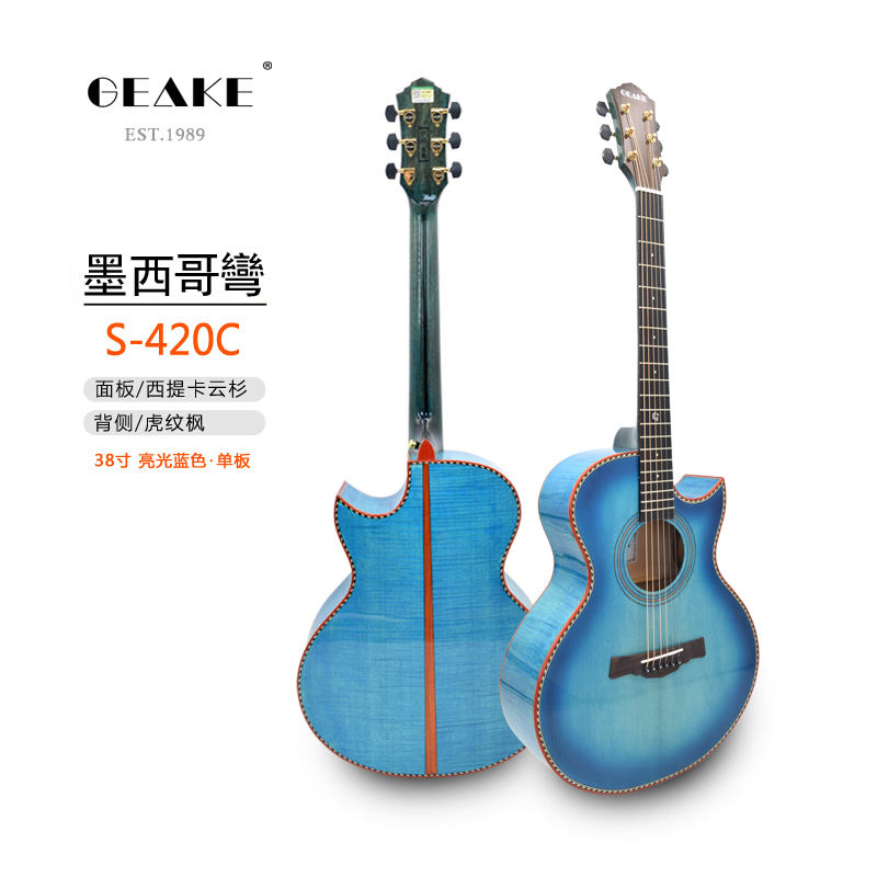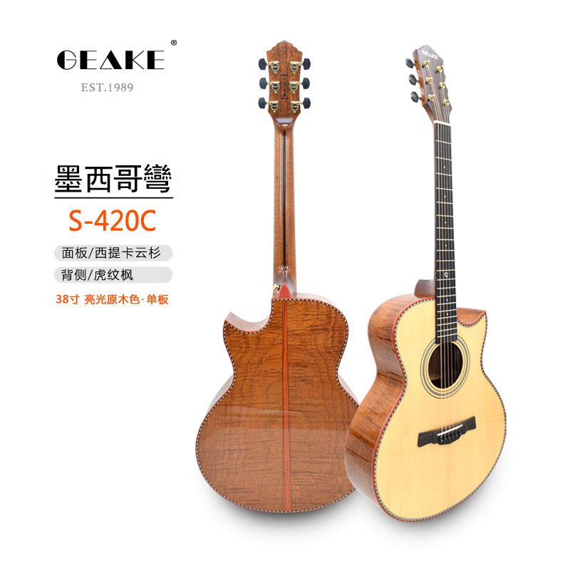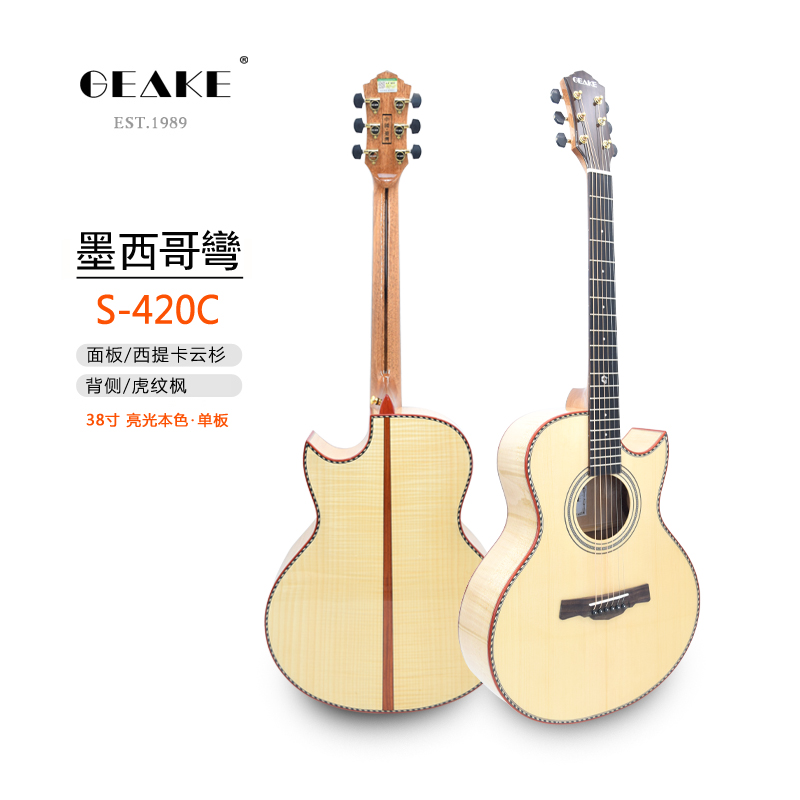 GEAKE Geek S420C guitar 38 inch single folk guitar spruce tiger pattern maple handmade children's girls guitar