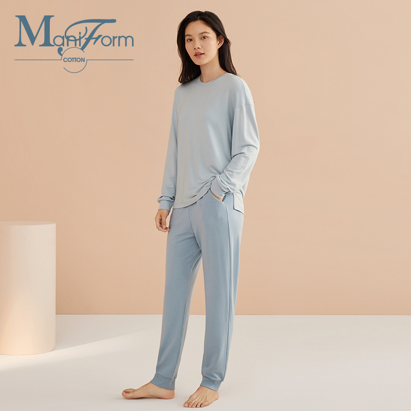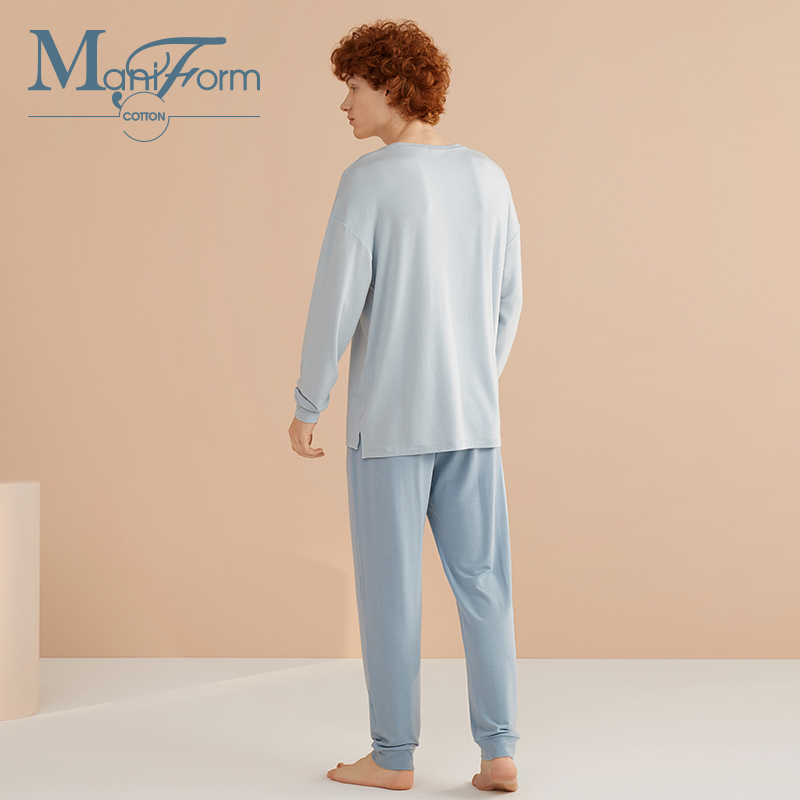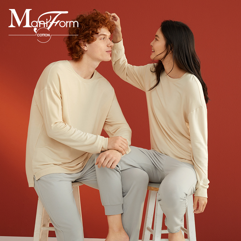 Maniform cotton life homewear modal knitted pullover couple suit men and women pajamas autumn
