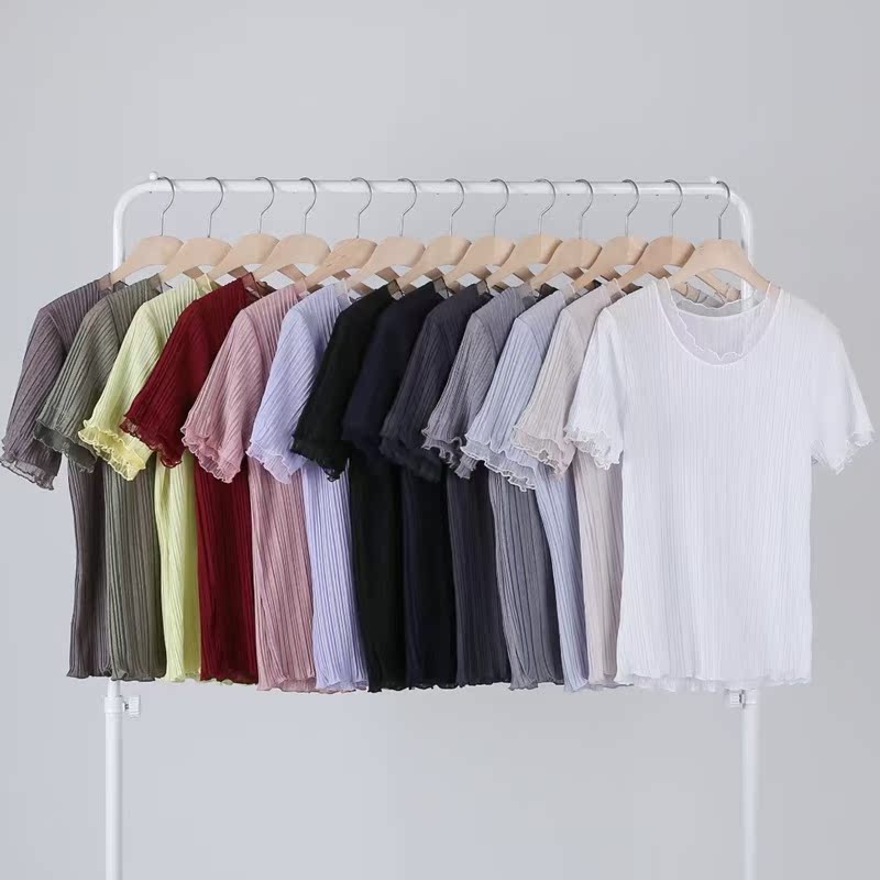 Yarn Roulette Short Sleeve Stretch Lady Summer New T-Shirt Fix Stretch Stretch in South Korea