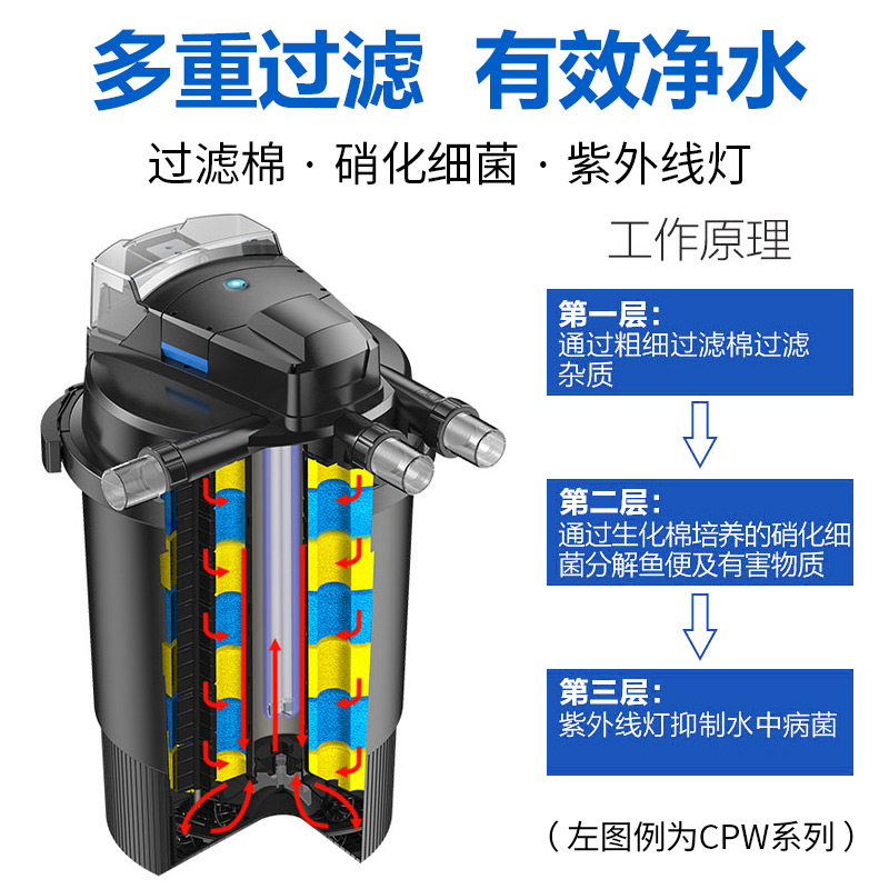 CPF—1500 (suitable for 2m³ inner fish pond) CPF—2500 (suitable for 3m³ inner fish pond) CPF—5000 (suitable for 4m³ inner fish pond) CPF—10