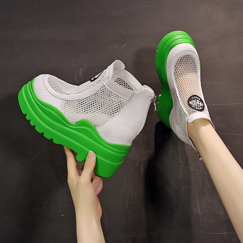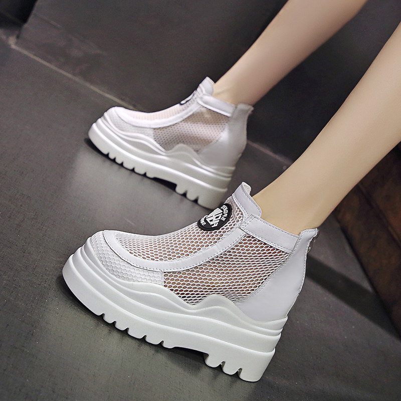 White Martin boots summer thin women's 2022 new 8cm inner heightened net boots thick bottom hollow boots short boots