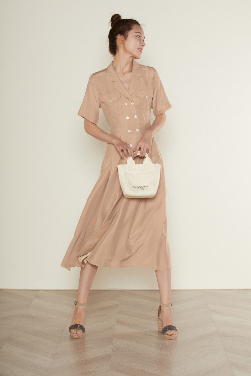 Lean Scribe Man Art Uniform Wind Sand Wash Real Silk Collection Waist A Character High Waist Suit Collar Short Sleeve Foreign Dress Woman