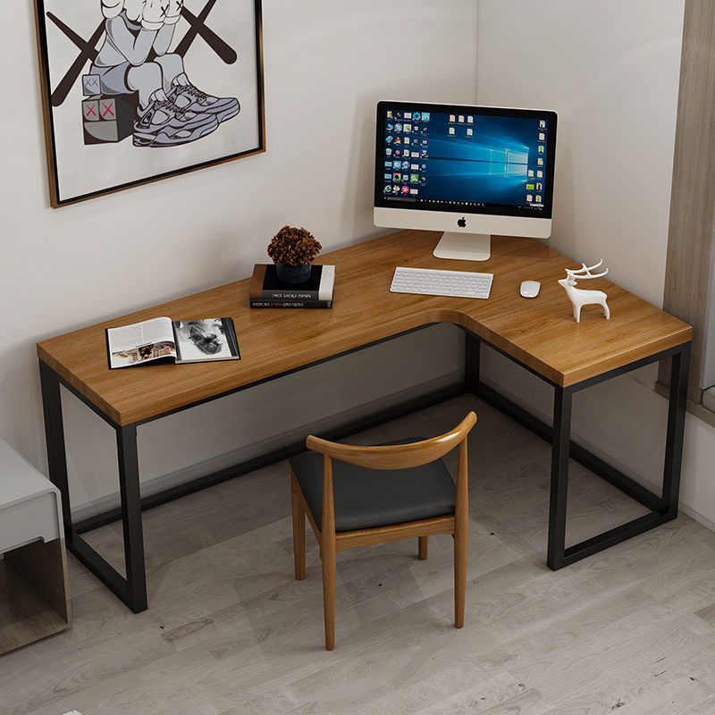 Bedroom With Corner Corner Table L Type Desk Solid Wood Iron Art Desktop Computer Desk Home Desk Brief Customize-Taobao