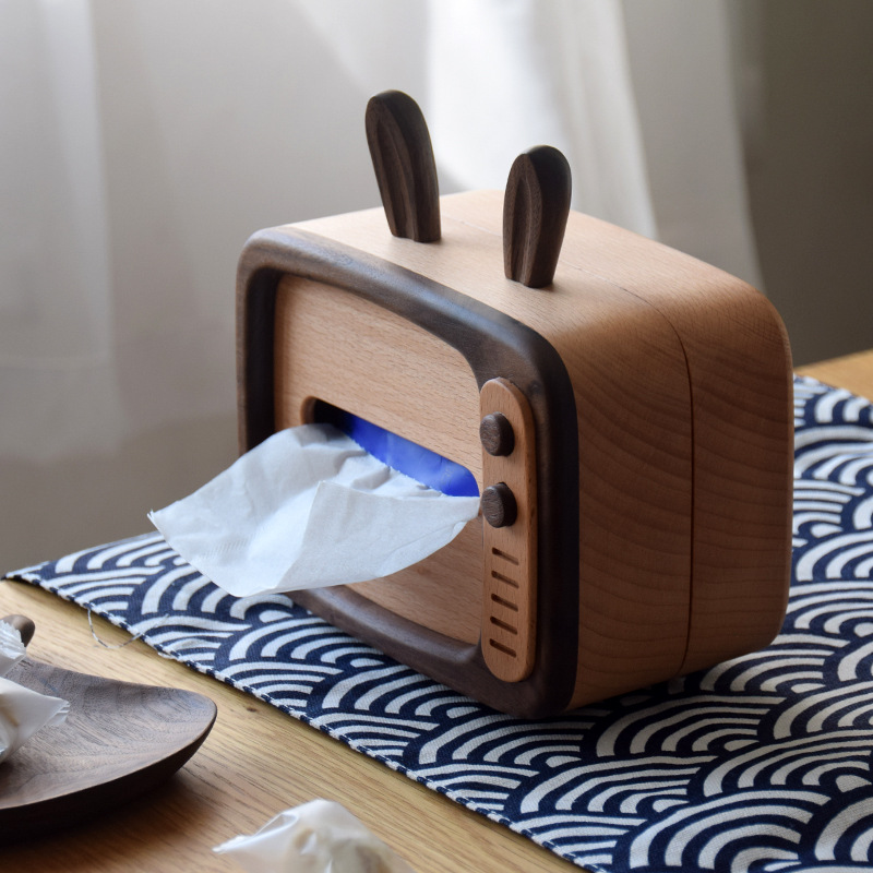Solid wood - brake carton - rabbit ear retro TV living room toilet carton light luxury