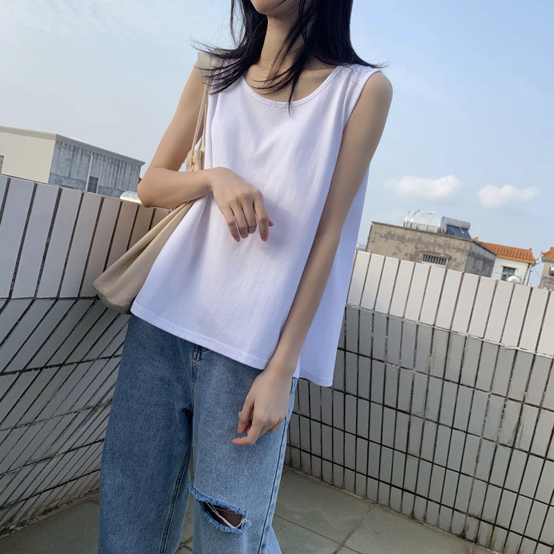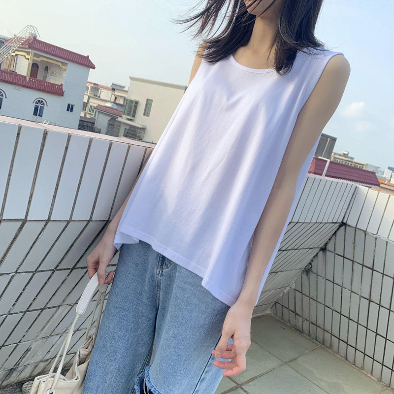 Pure cotton sling black and white vest women's inner wear thin section loose round neck large size sleeveless trendy top summer