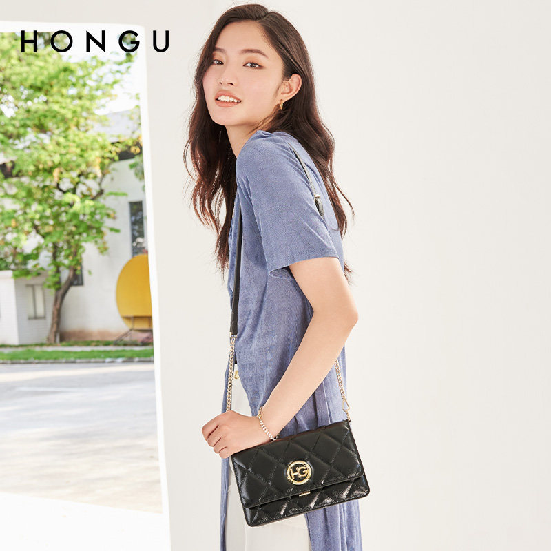Red Valley bag women's 2021 new leather fashion rhombus shoulder bag leather small fragrance chain messenger bag 3969