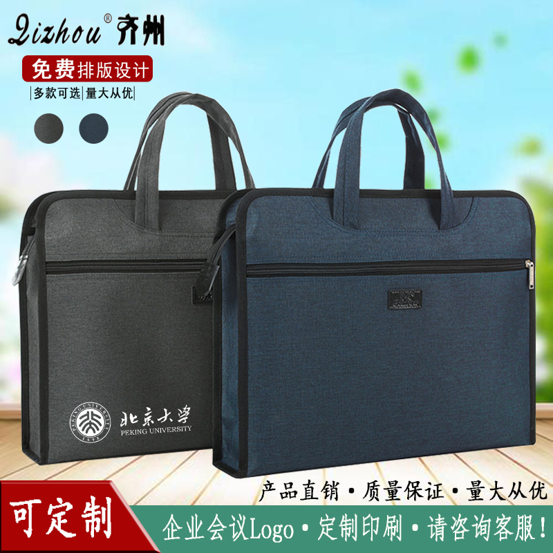 Smole men's business briefcase large-capacity handbag canvas package meeting training package printed LOGO