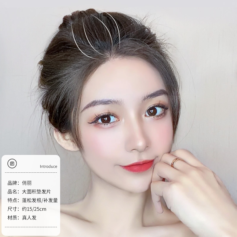 Wig pieces female head top summer one piece type full true hair invisible non-marking cushion hair pieces increase the amount of fluffy hair root patch
