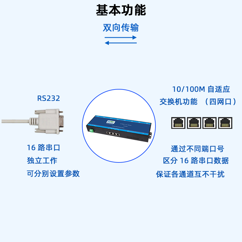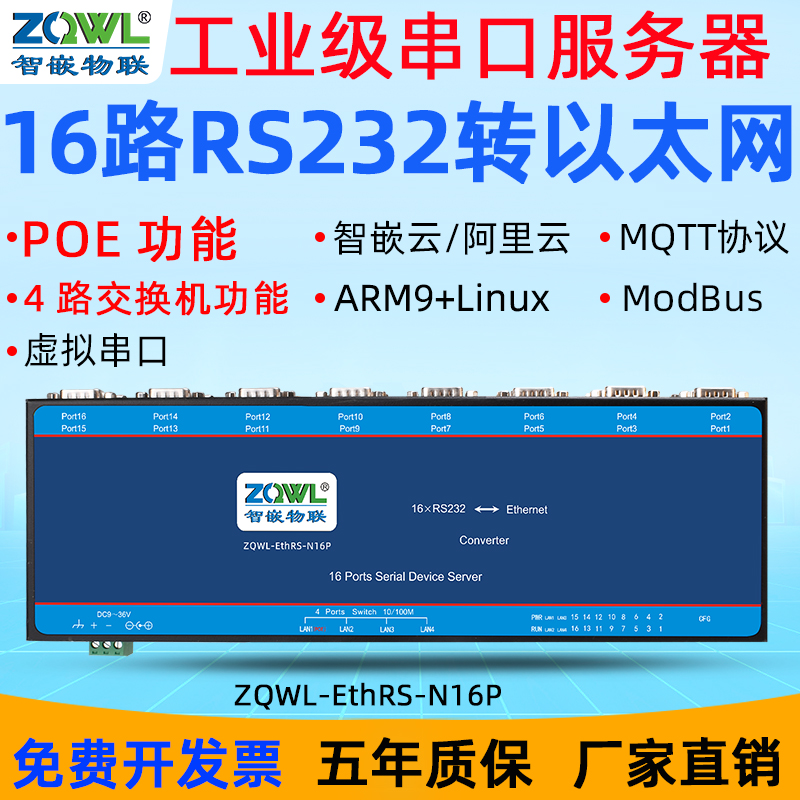 (Zhi-embedded Internet of Things) POE power supply serial server switch function Industry Level 16-way RS232 turn B Ethernet module Modbus RTU TCP Communication Gateway Internet access