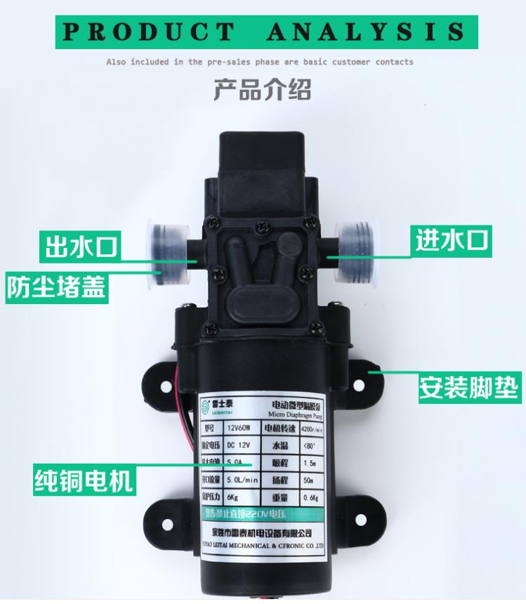 Electric micro diaphragm pump self-priming booster pump agricultural spray pump 220V 60W car wash high pressure small water pump switch