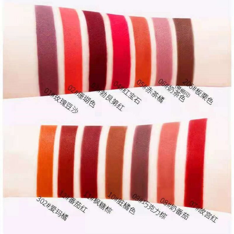 01 Rose Bean Paste 03 Burgundy Red 04 Rose Red 05 Orange Red 07 Positive Red 08 Cream Orange 09 Chocolate 10 Dirty Orange 11 Maple Brown 12 Tomato Red 302 Emma Orange