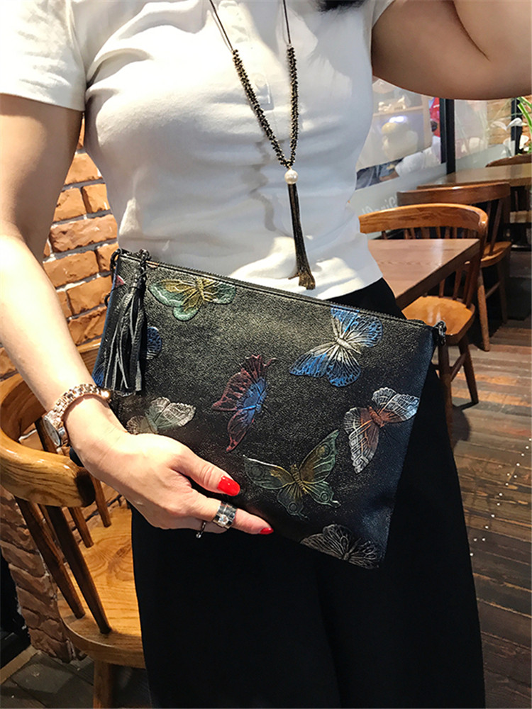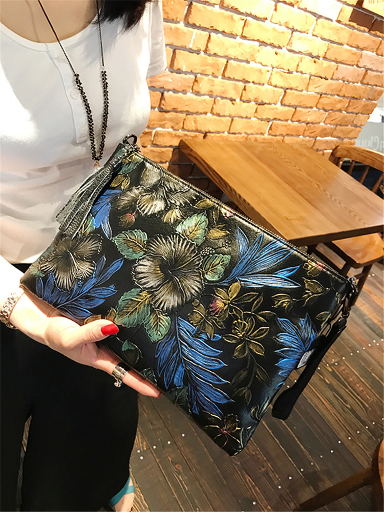 Tide brand Korean handbag leather flower clutch banquet bag printed envelope bag large-capacity one-shoulder diagonal small bag