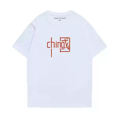 Cang Shi Yishi co-name Tide brand White short sleeve T-shirt men summer loose Chinese style couples cotton top ins