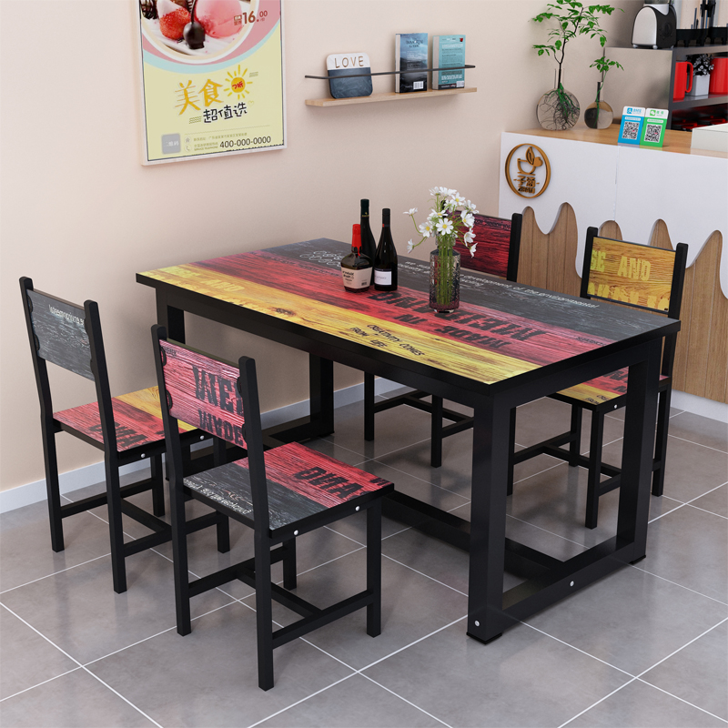 Bag Fitted Small Eating Shop Fast Food Table And Chairs Combined Canteen Restaurant Table And Chairs 6 People 4 People Modern Minima Rectangular Fast Food