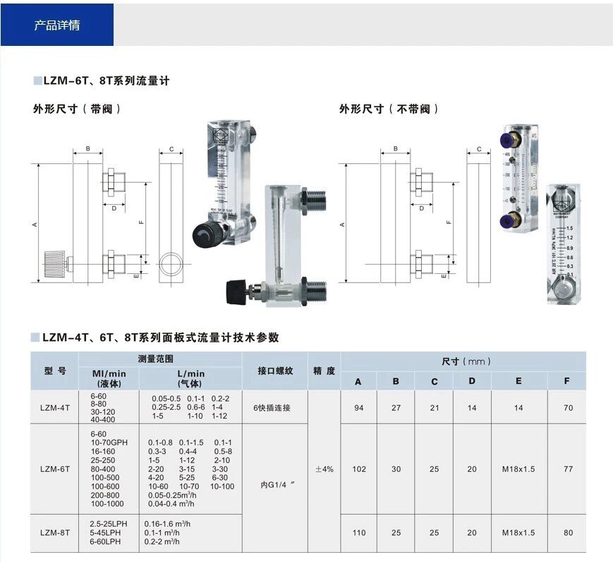 LZM-6T Jintai ZYIA panel type plexiglass gas liquid rotor float air water small flow meter