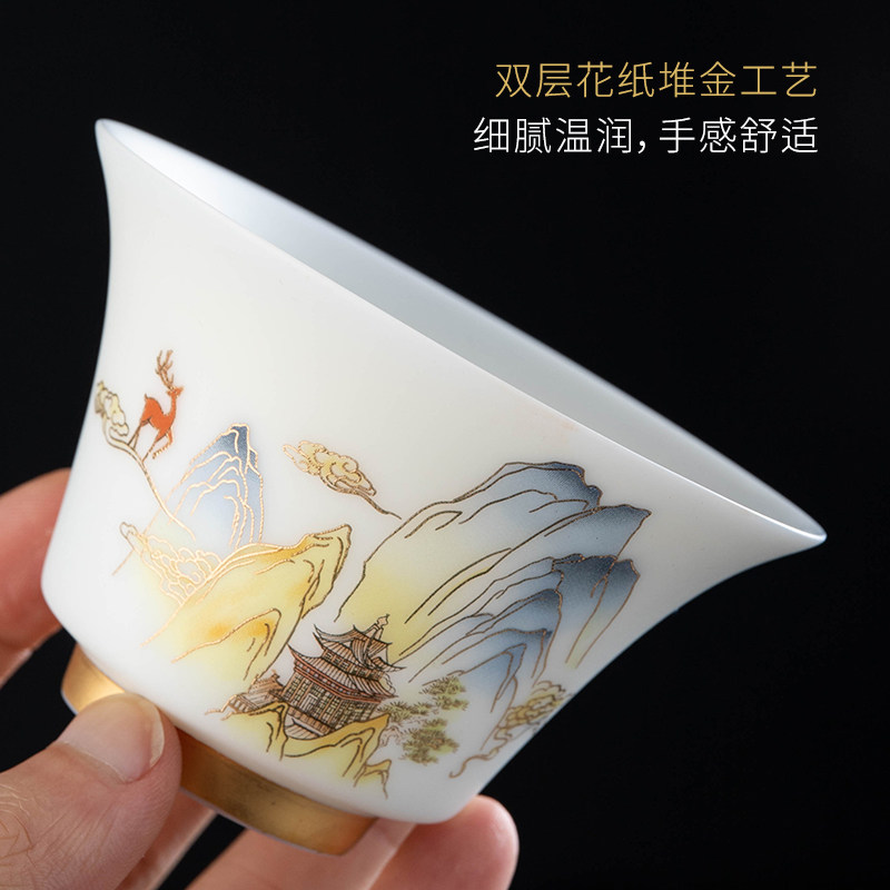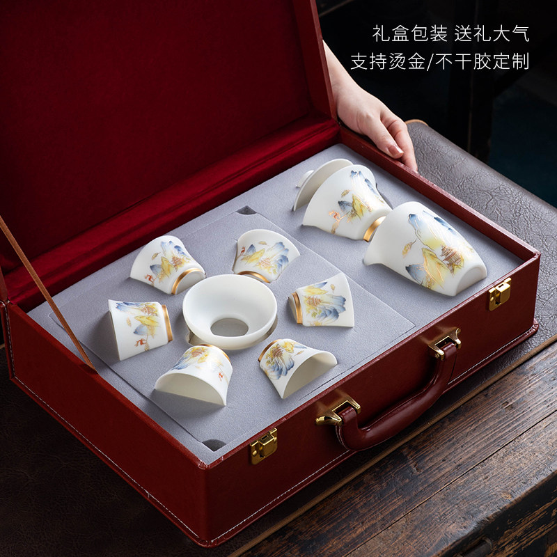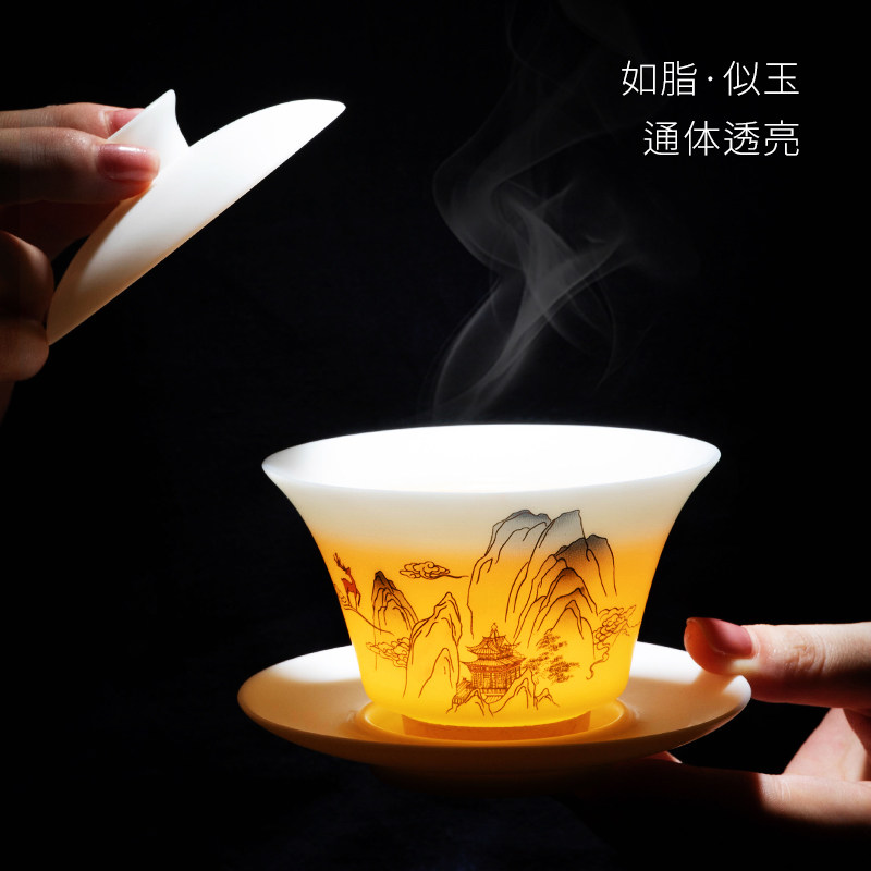 Wonderful Lotus scented ceramic Gongfu tea with a whole set of suits Home Gift Deed goat fat jade Porcelain White Porcelain Chinese Style Lid Bowl
