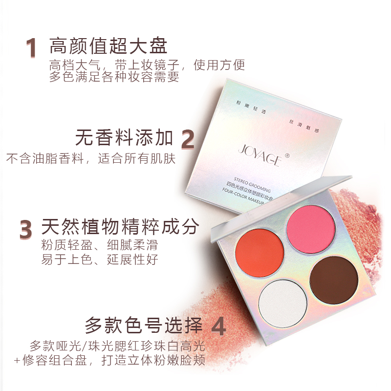 01#Four-color matte blush plate-free five-piece set 02#Four-color pearly blush plate-free five-piece set 03#Four-color pearly blush highlighter repair plate-free five-piece set 04#Four-color pearly light
