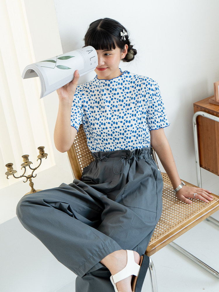 Black and blue polka dot jasmine print