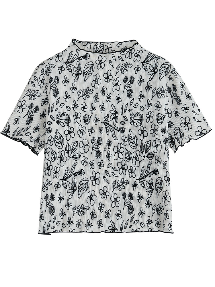 df texture sense fabric all-match self-cultivation plain color printing short-sleeved T-shirt women's summer top 3 colors 3589