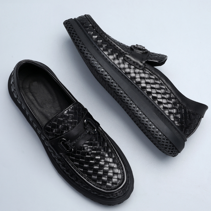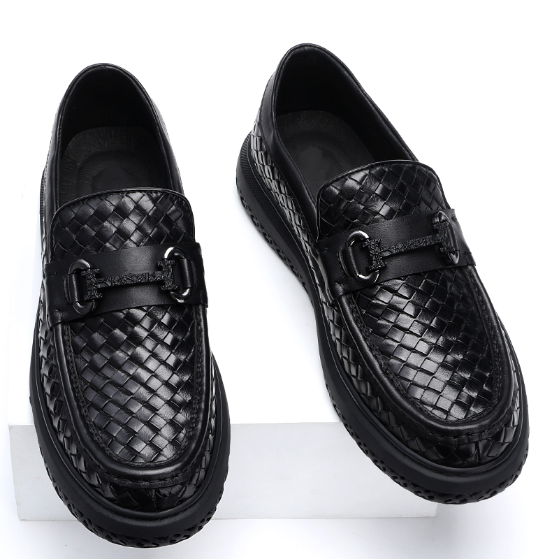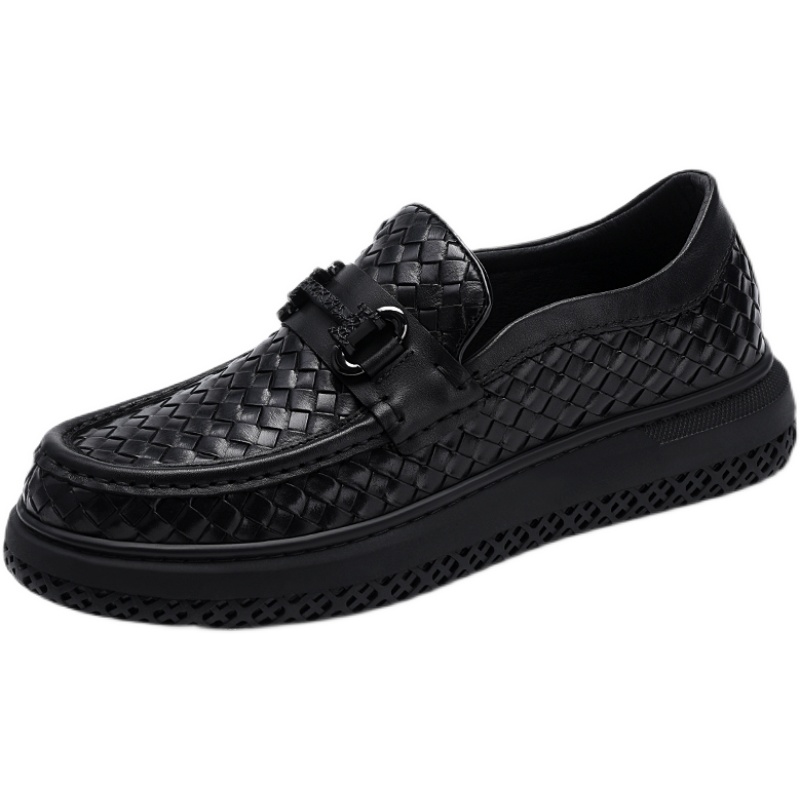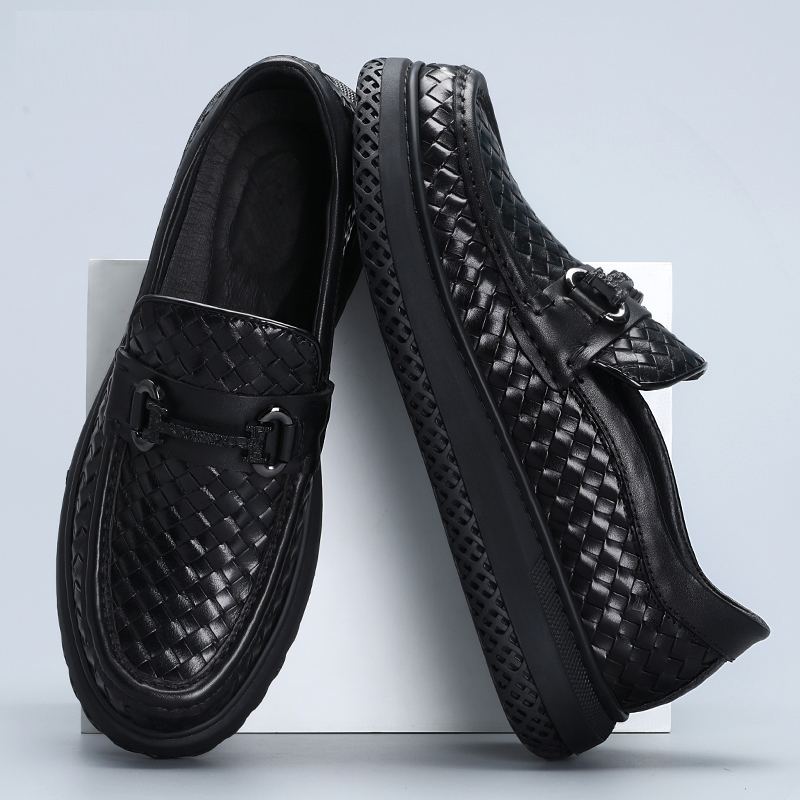 ROAD MAKER NEW LEATHER LEATHER SHOES Man Tide Breathable Burlock Suit Soft-bottom Braided Casual Leather Shoes Man