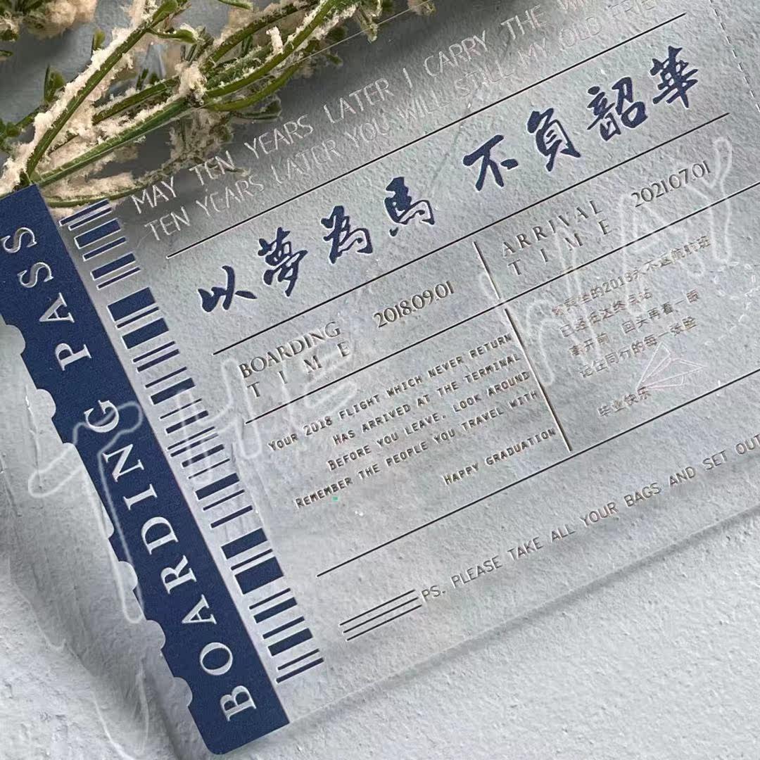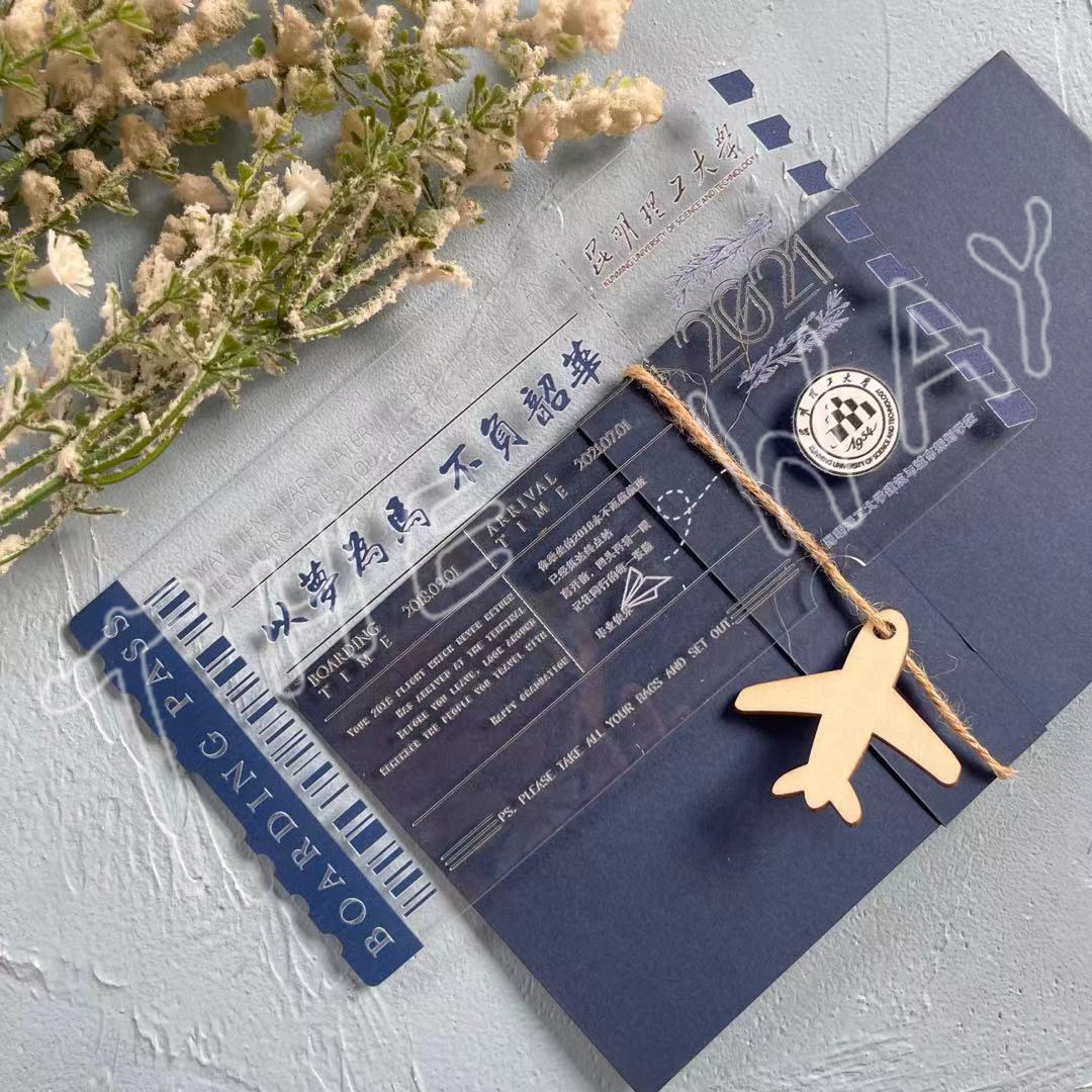 Acrylic Invitation for Cambodia Ticket 2021 School Blue Flight Graduation Wedding Business Invitation Letter of invitation to Cambodia