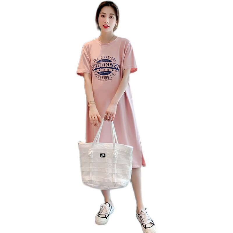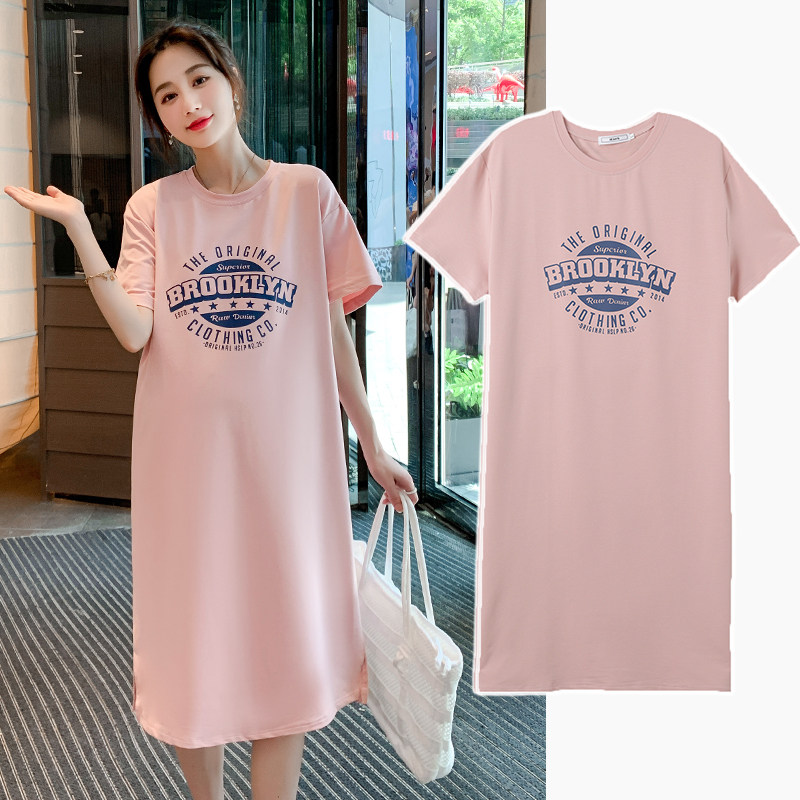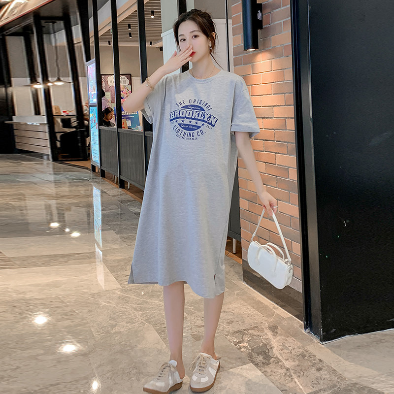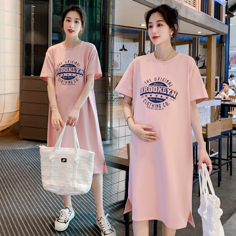 Pregnant Woman Summer Clothing Short Sleeve T-Shirt Medium Long Version Summer Fashion Over Knee Open Fork Easy Pregnant Woman Foreign Dress Summer Dress