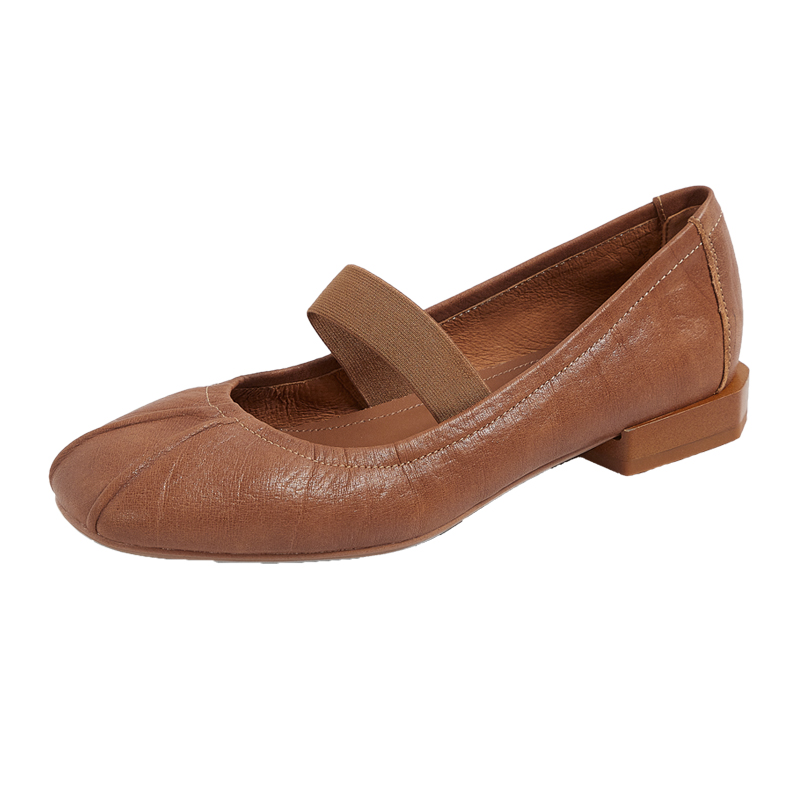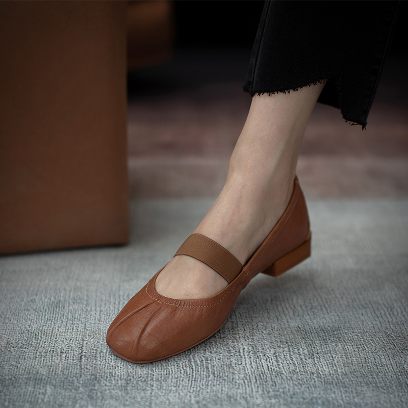 Genuine Leather Retro Grandma Shoes Woman Flat Bottom Soft Leather Round Head Pregnant Woman Ladyshoe Soft Bottom Bean Bean Ballerina Mary Precious Shoes