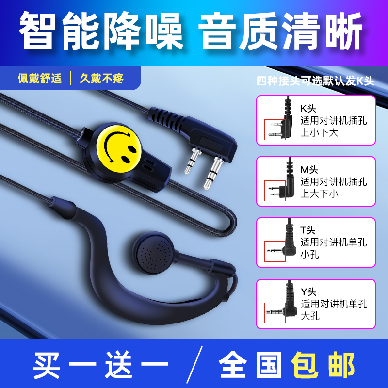 Buy one and give a smiley face talkback to the ear machine line General left and right can wear the intercom ear-wheat single-hole ear hanging-Taobao
