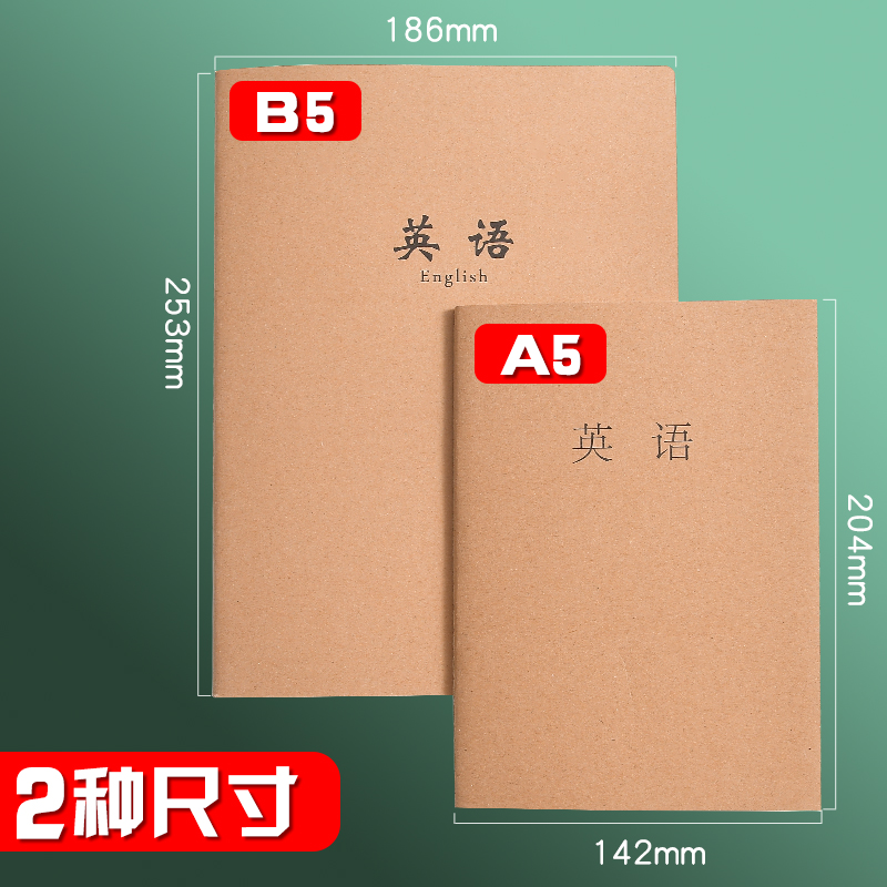 Kraft paper notebook English book for primary school students, third grade, junior high school students, thickened large 16K four-line three-grid b5 composition book, Chinese text notepad, car line, grid, horizontal line, soft copy