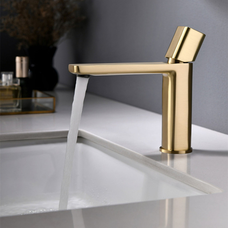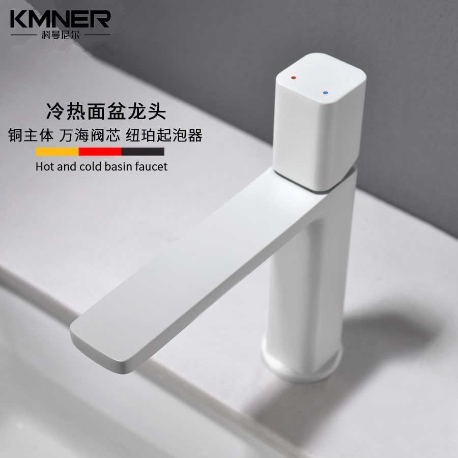 Bathroom cabinet hot and cold basin faucet washbasin single hole countertop basin full copper gun off-white heightened faucet bathroom