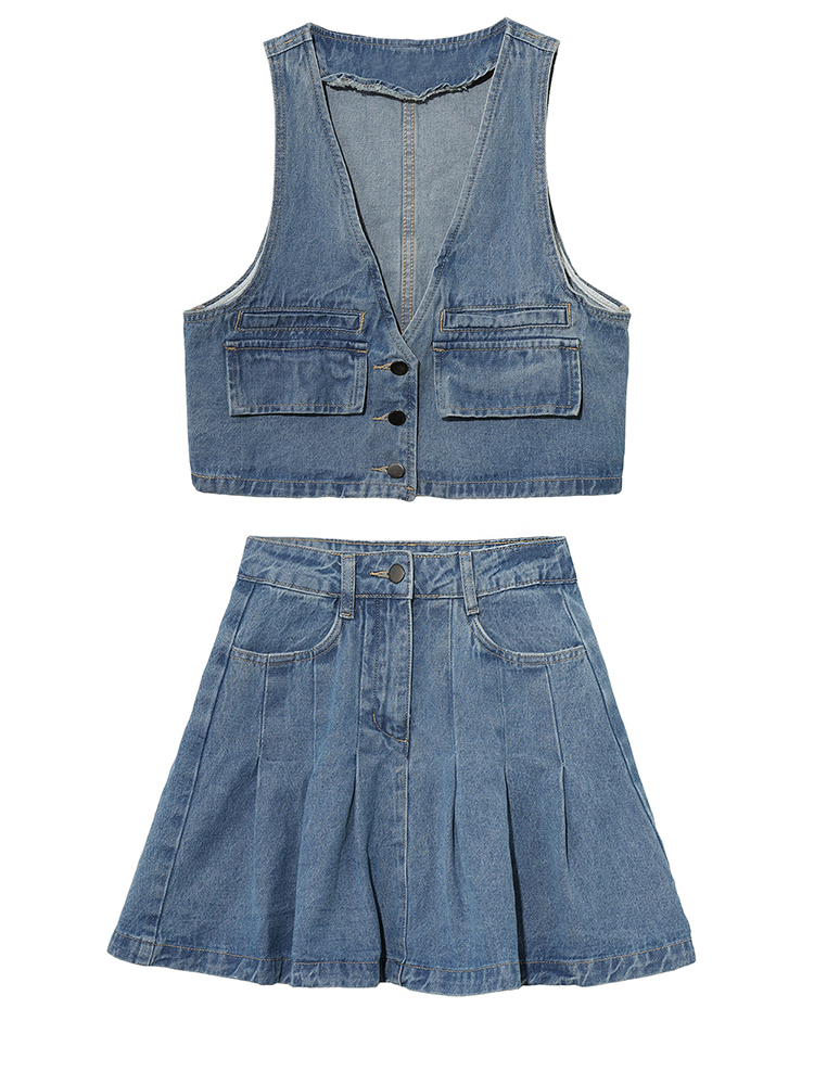 Denim Waistcoat Vest Plexigo Skirt Suit Skirt Woman Summer Dress Retro Temperament Small Sub Half Body Skirt With Two Sets