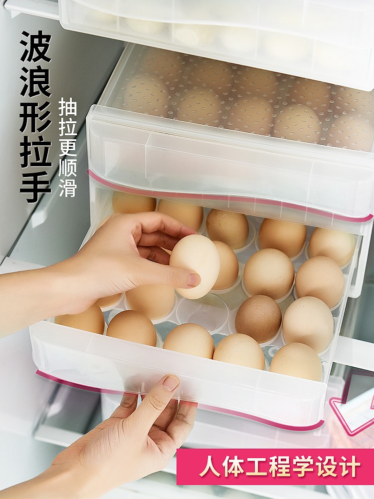 Double-layer drawer-type egg case can be placed 60 double decker drawer water dumplings for about 300 water dumplings monolayer 30 g egg case can be superimposed with double layer 60 g egg case can be superimposed on four floors 120