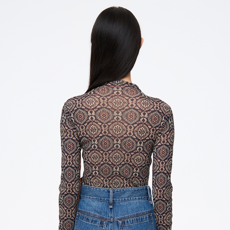 National craze] EP Yaying Women's dress Original Heavy Industries printed half high collar Bottom Shirts Mall the same section 5502A
