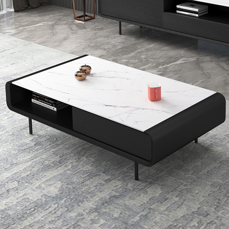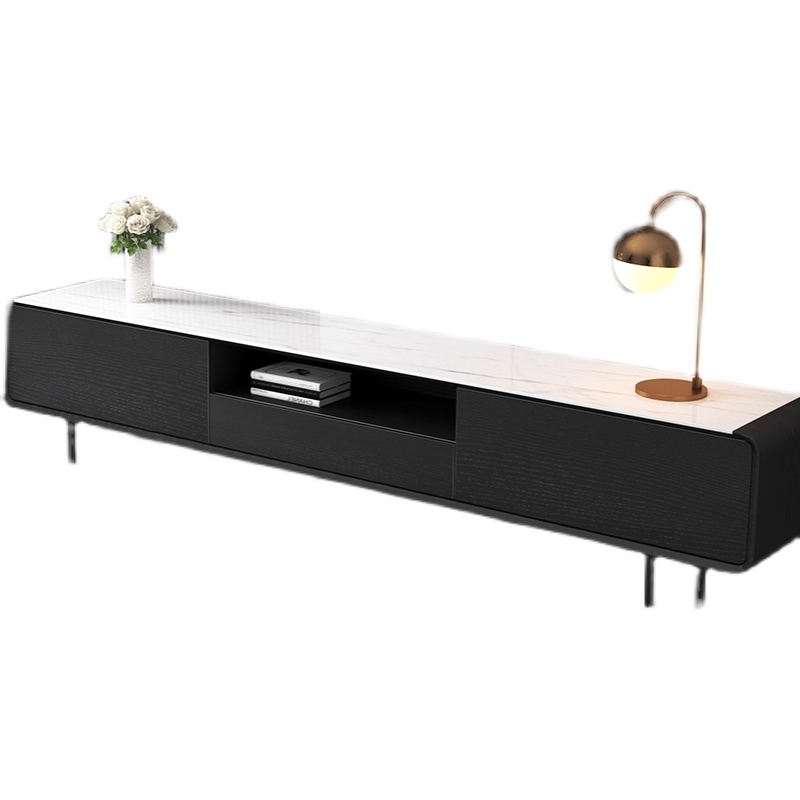 Slate TV cabinet coffee table combination modern minimalist small apartment Nordic pure black Italian minimalist iron foot floor cabinet