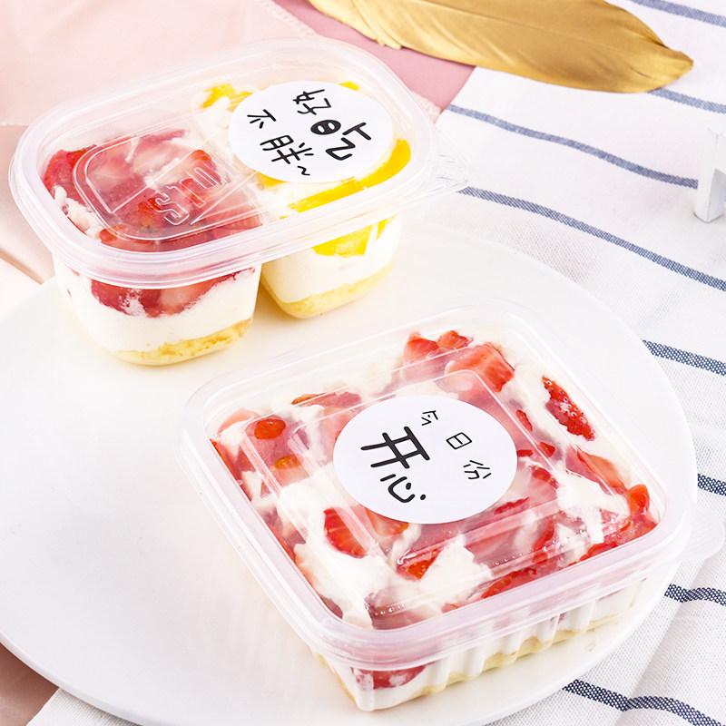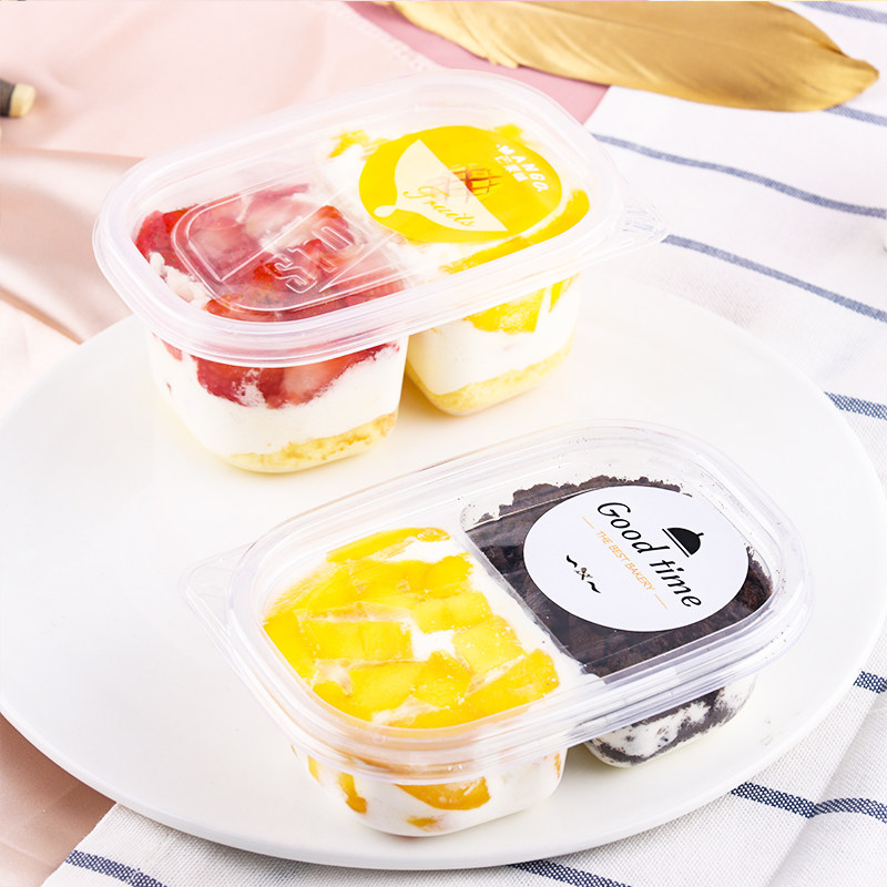 Net Red Dessert Mousse Box Double-Grid West Point Fruit Cake Soy Milk Melaleuca Bento Box One-time Packing Box