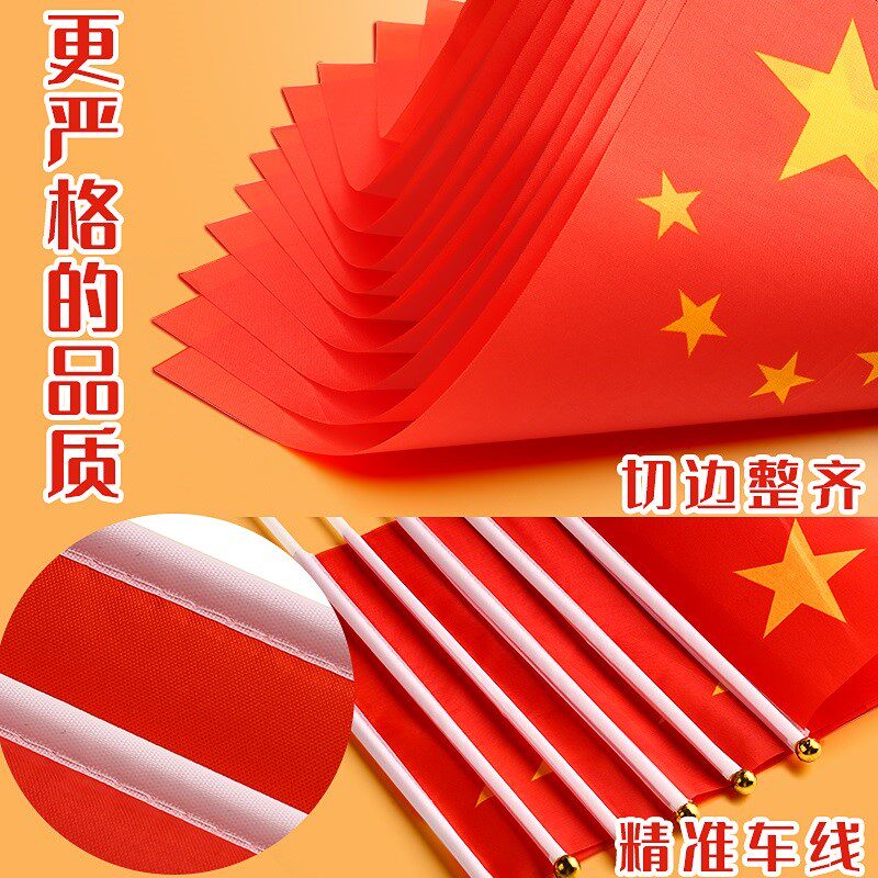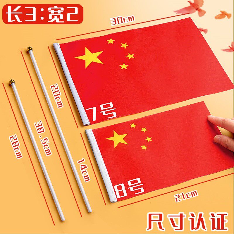 Five-star small red flag props No. 8 Chinese flag with pole decoration dress up National Day children's small flag pennant hand-held hand-waving flag trumpet bunting party flag flag team flag wholesale No. 7