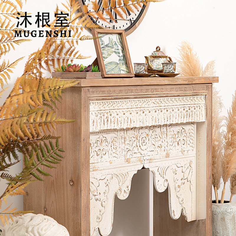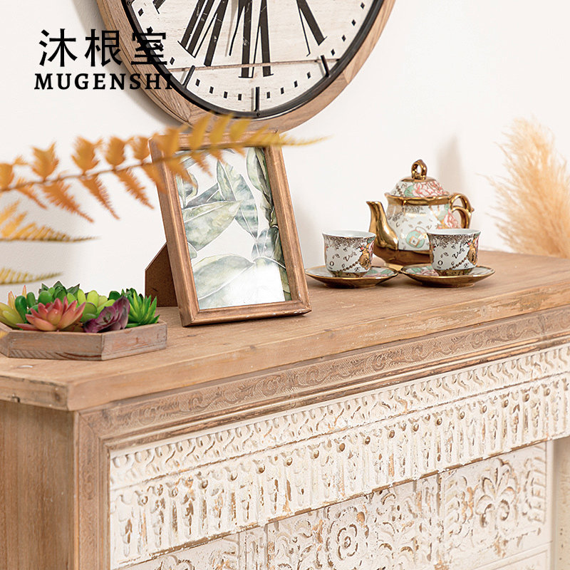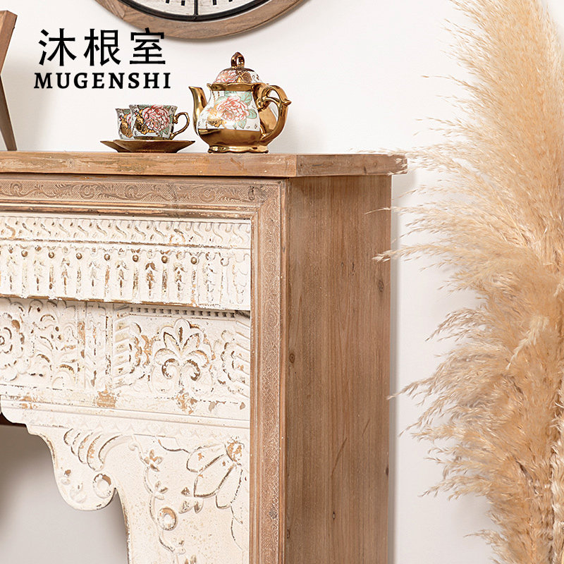 American solid wood retro fireplace do old carved living room B & B background wall home indoor porch small decorative cabinet