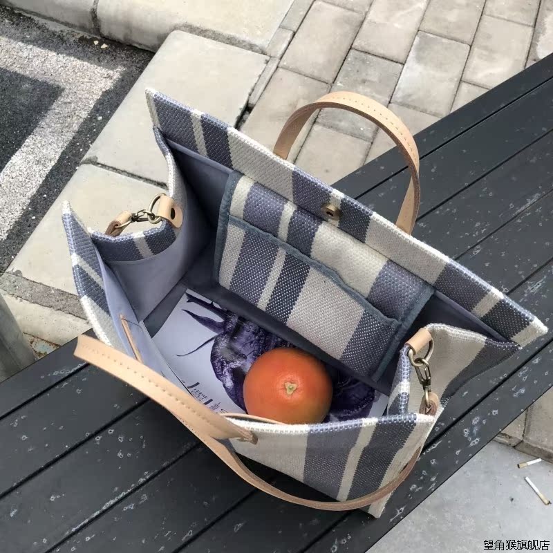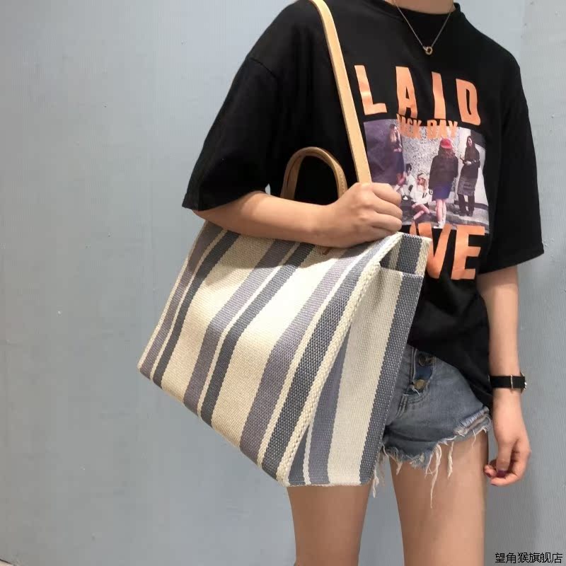 Big bag women's 2022 new trendy Korean version all-match large-capacity striped contrasting color canvas bag ins super hot one-shoulder style