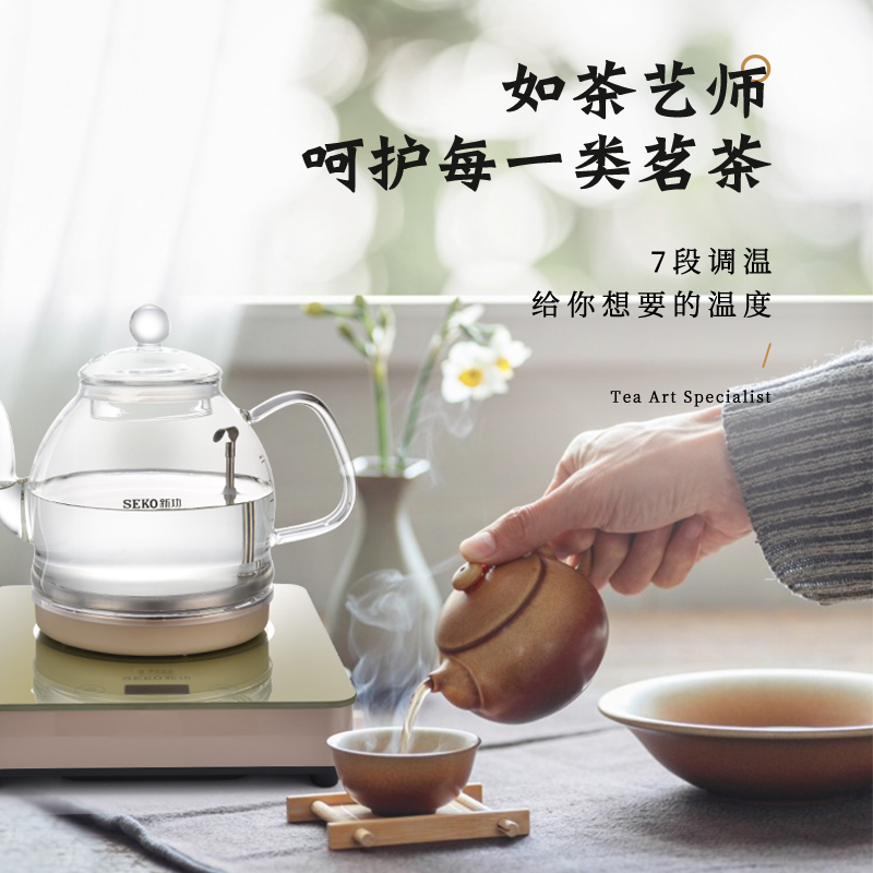 Seko New Work W13 Fully Automatic Bottom Water Electric Kettle Quick Cooking Pot Glass Burning Kettle Home Bubble Teapot