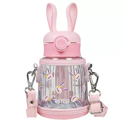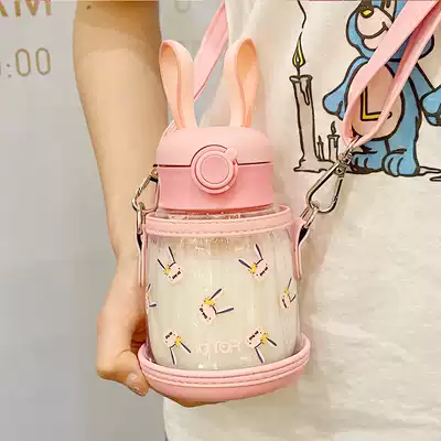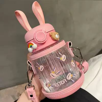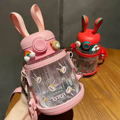 Straw cup Cute female ins wind student high-value plastic children's water cup summer baby holding bag Portable kettle