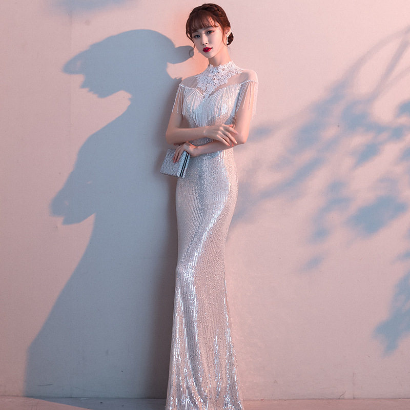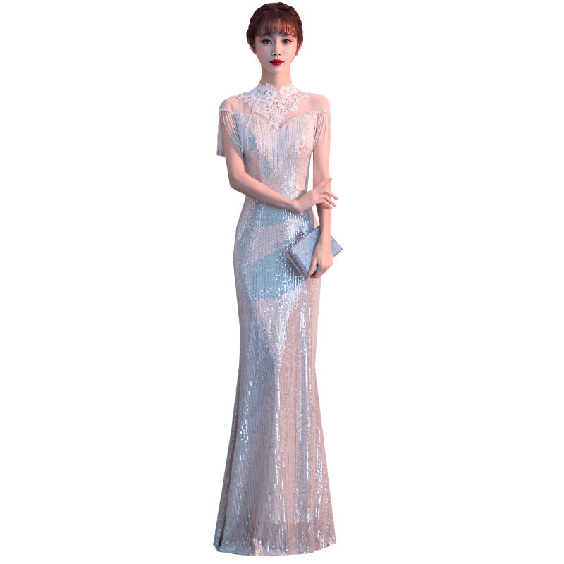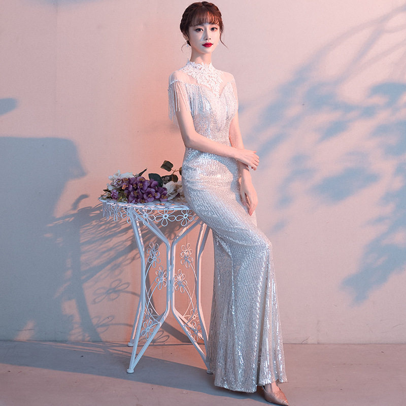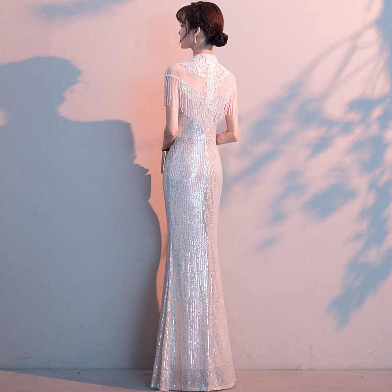 New fish tail gown dresses Bright Pieces Streaming Su Temperament Student Art Exam Banquet Hosted to be thin and luxurious and luxurious