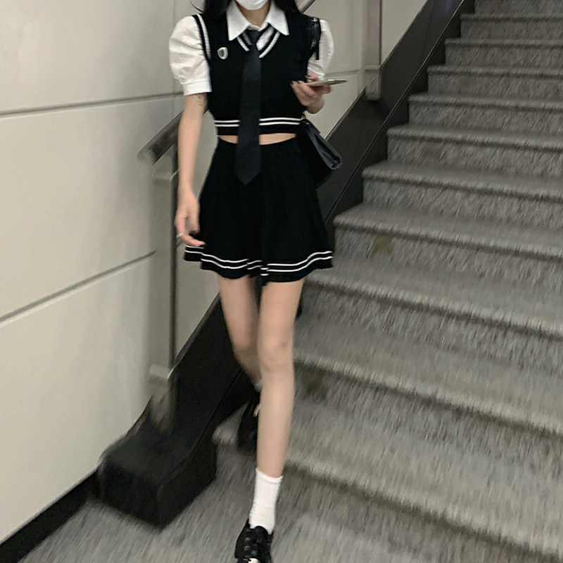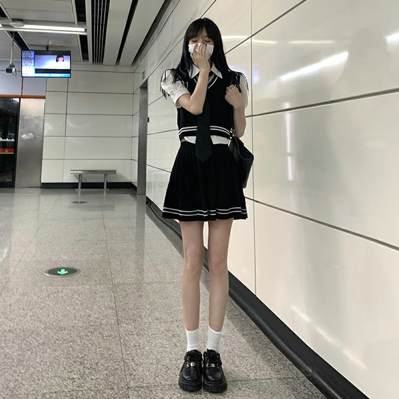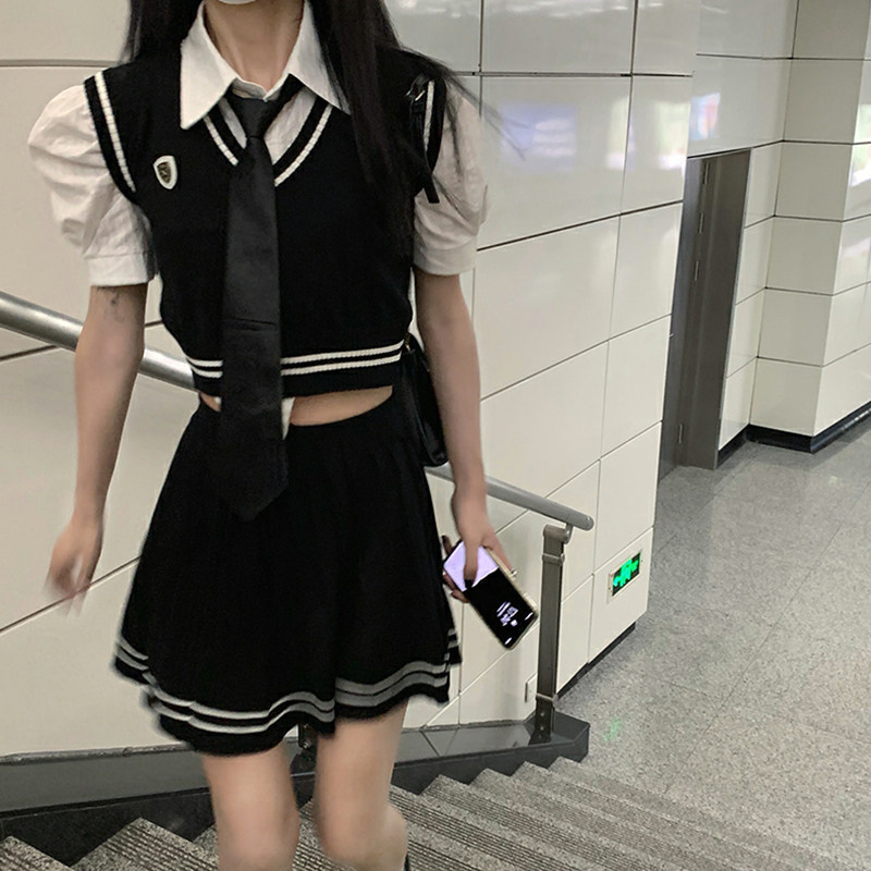Black vest, pleated skirt, bottoming shirt with black tie, white vest, pleated skirt, bottoming shirt with black tie (no white ribbon, take care)
