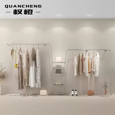 Net red clothing store display stand on the wall wall stainless steel silver hanging clothes rack against the wall Hanfeng women's clothing store shelves