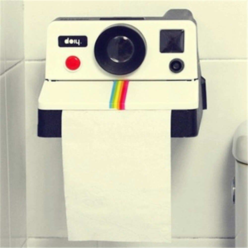 (Wonderful Store) Retro Camera Polaroid Shaped Paper Towel Holder Nail-Free Bathroom Roll Holder Storage