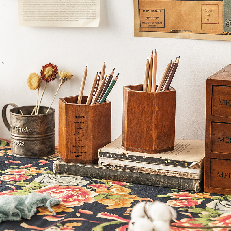 Day Style Retro Makeup Pen Holder Female Multifunction Children Solid Wood Storage Box Pen Holder Tabletop Finishing Woody Pen Insert