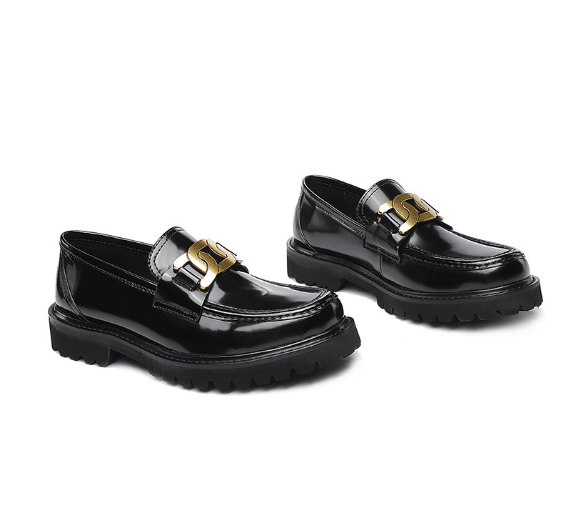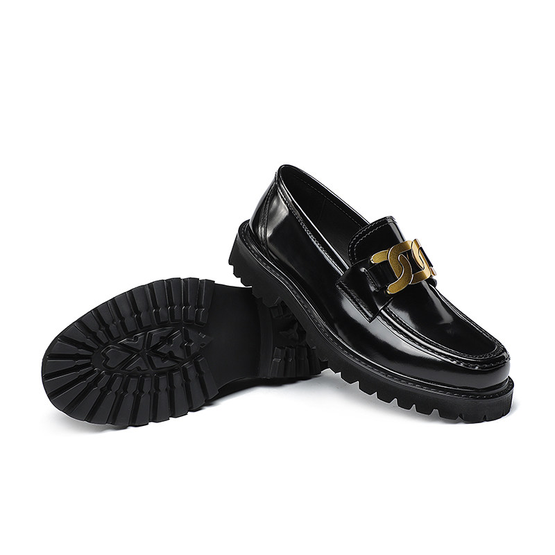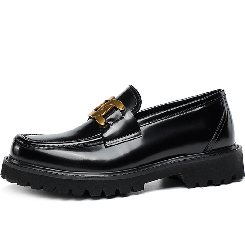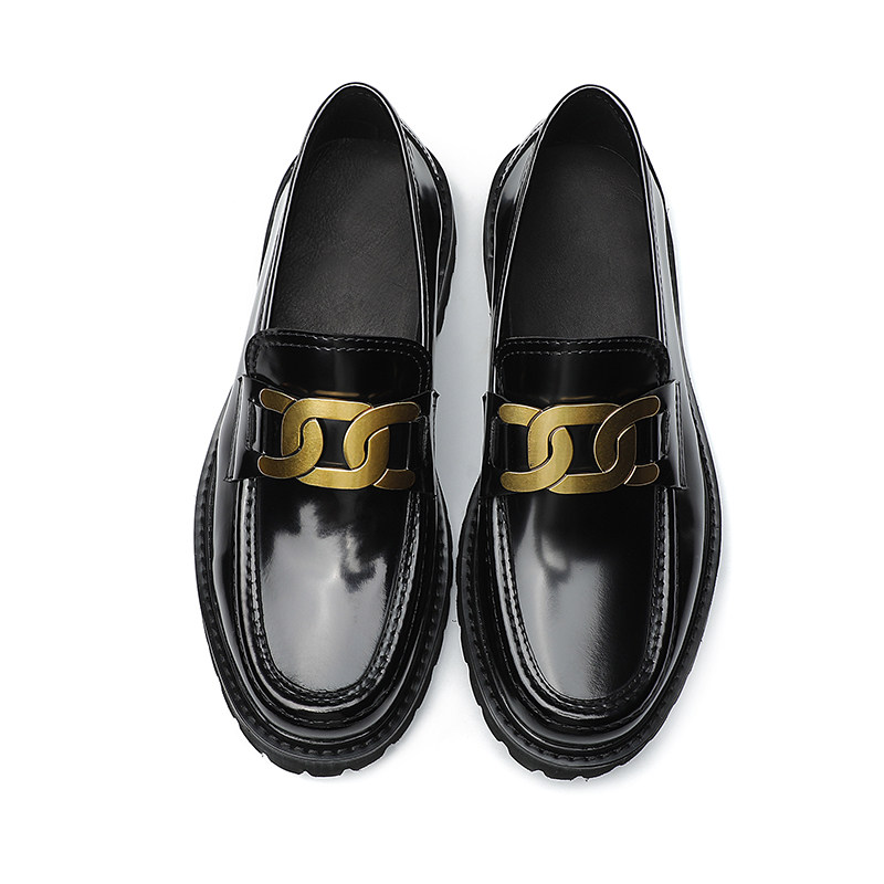 Twist buckle open edge pearl bright leather leather thick-soled loafers men's British style slip-on leather shoes fashion casual increase