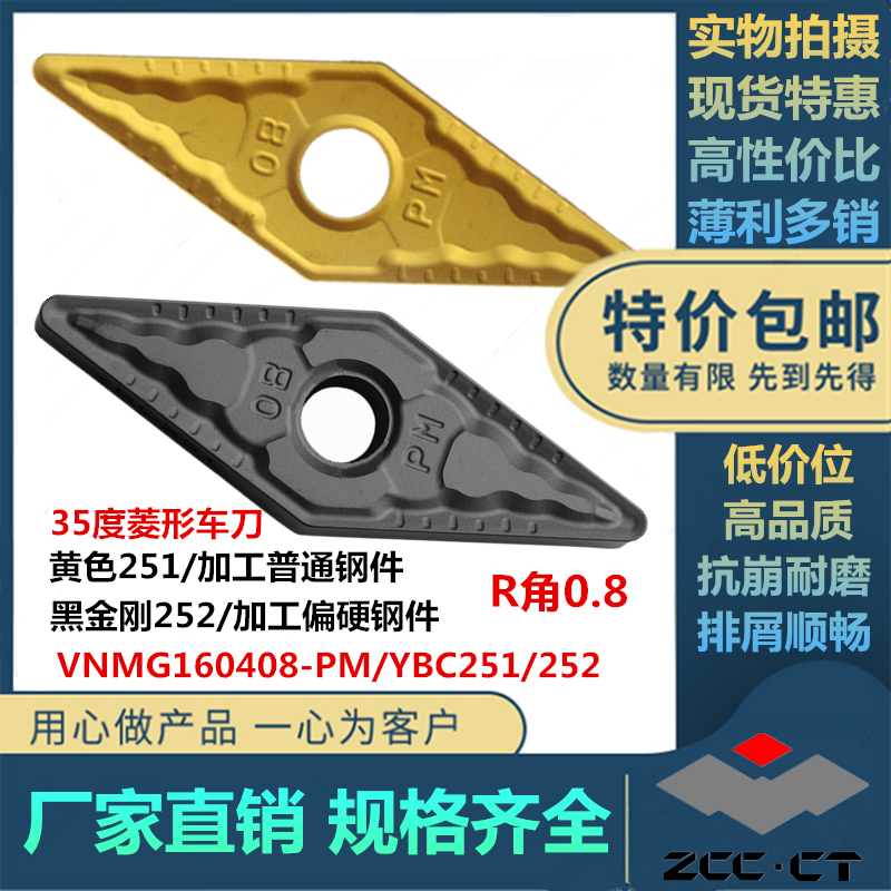 Diamond 35 degree CNC outer circle car blade VNMG160404 08 12-PM diamond sharp knife YBC251 252